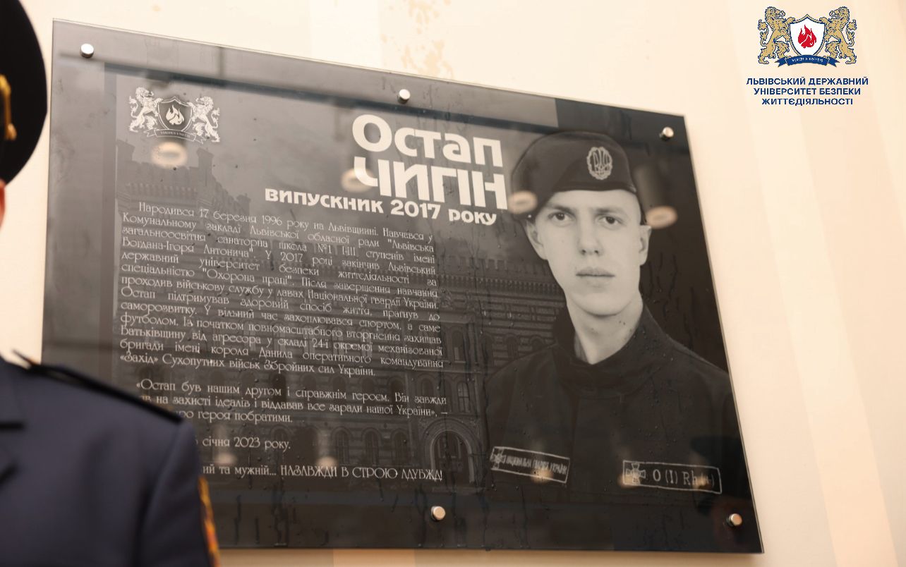 Сьогодні день у Львівському державному університеті безпеки життєдіяльності розпочався з особливої події — відкриття іменної аудиторії, що матиме ім’я Героя України, випускника нашого Університету, мужнього захисника та світлої людини — Остапа Чигіна.