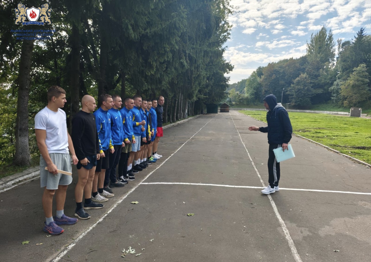 Сьогодні на навчально-спортивному комплексі університету пройшли змагання з естафетного бігу 5х300 метрів серед навчальних взводів ЛДУБЖД.