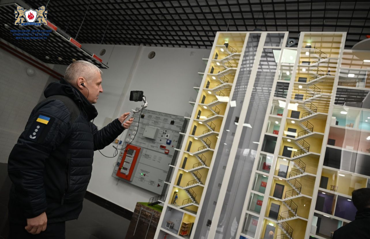 Відповідно до програми візиту експертної групи для проведення акредитаційної експертизи освітньо-професійної програми «Пожежна безпека» за першим (бакалаврським) рівнем вищої освіти, начальник навчально-методичного центру Микола СИЧЕВСЬКИЙ, заступник начальника навчально-наукового інституту пожежної та техногенної безпеки з навчально-наукової роботи Андрій ДОМІНІК та гарант ОП Олег ПАЗЕН продемонстрували матеріально-технічну базу, що використовується під час реалізації освітньої програми, та соціальну інфраструктуру Університету.