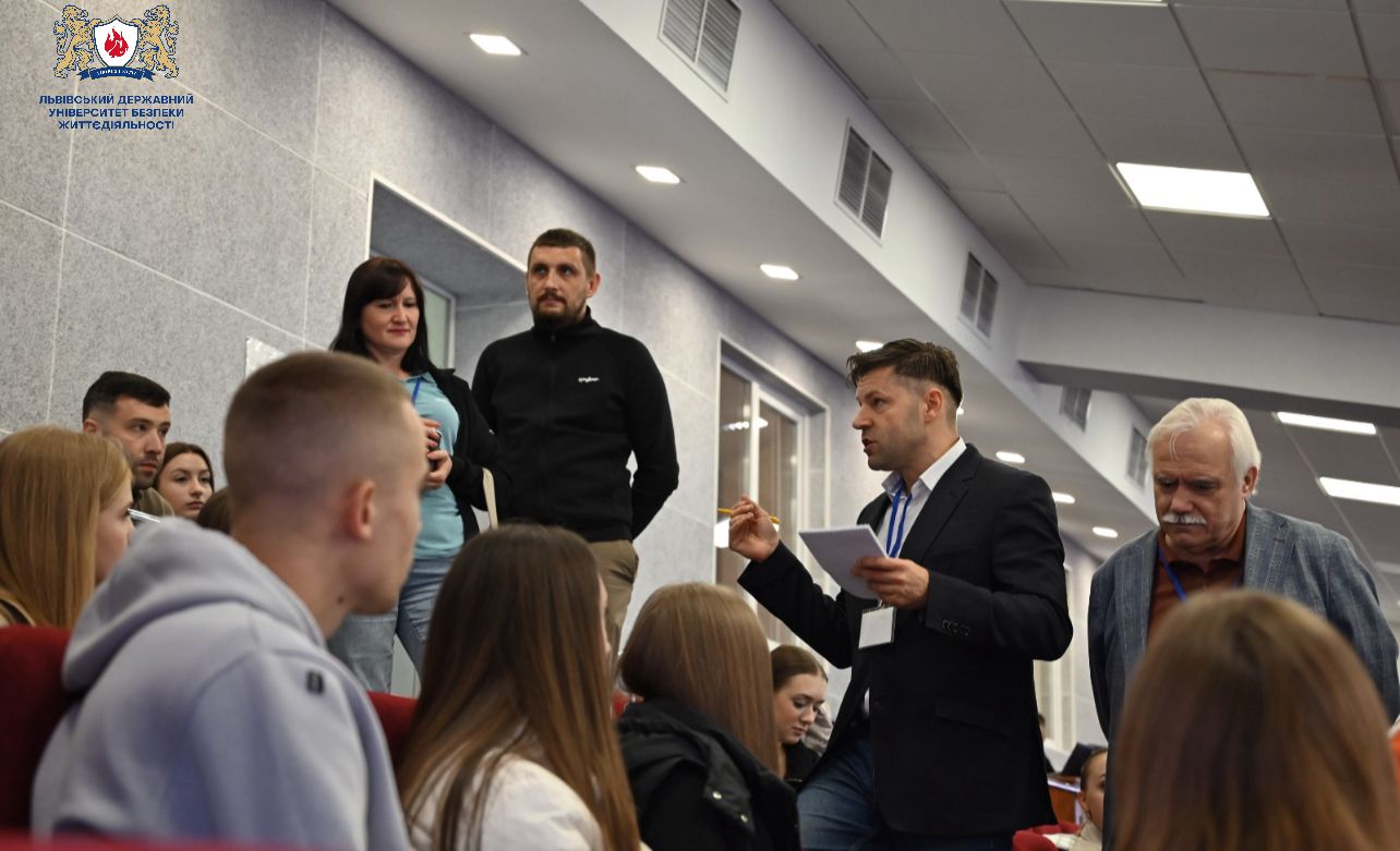 Студенти вели активну дискусію з провідними експертами, зокрема: Віталієм ЦОПОЮ (д-р техн. наук, аудитор зі стандартів ISO 9001, ISO 14001, ISO 45001, ISO 5001, серії ISO 31000), Анатолієм АЛЕКСЄЄВИМ (директор з охорони праці, ТОВ «Експерт Петролеум Україна») та Валентиною ЗАБЕЛІНОЮ (менеджер з управління бізнес-ризиками, ТОВ «ІКЕА Рітейл Україна») та іншими учасниками робочої групи – висококваліфікованими фахівцями з питань безпеки праці, викладачами інших закладів вищої освіти.