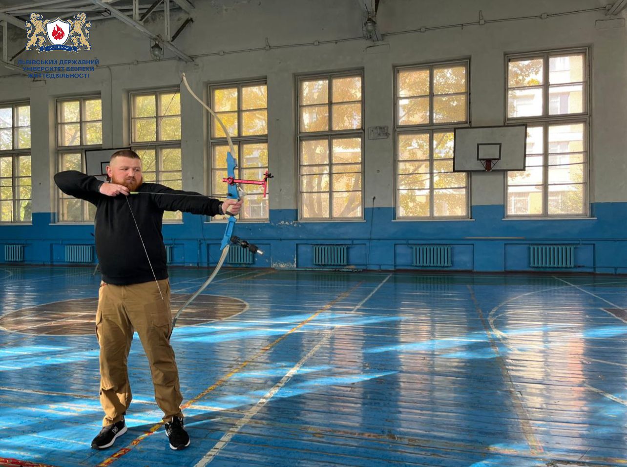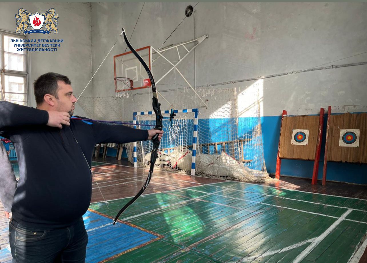 Ветерани війни, що сьогодні працюють у Львівському державному університеті безпеки життєдіяльності взяли участь у майстер-класі зі стрільби з лука, які відбулися на базі одного із спортивно-стрілецьких клубів.