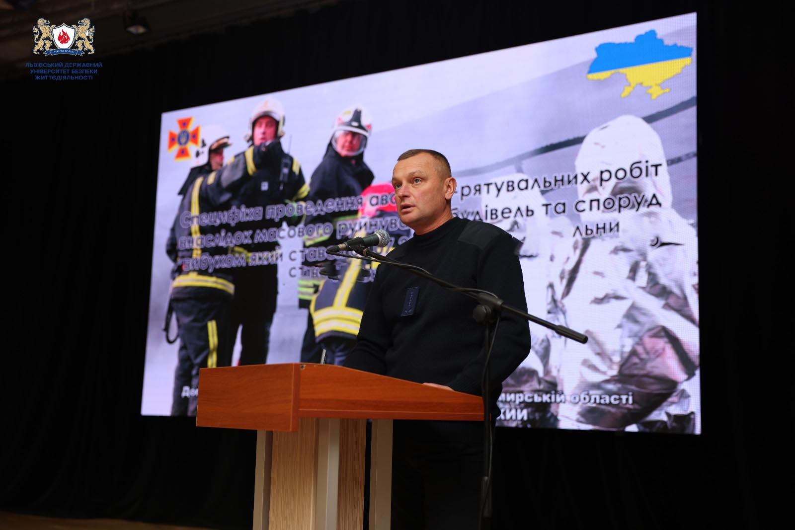 Під час зустрічі офіцер поділився досвідом проведення аварійно-рятувальних робіт унаслідок масового руйнування будівель та споруд вибухом. Він детально розповів про організацію рятувальних операцій, гасіння пожеж, пошук і порятунок людей з-під завалів, а також роботу штабу з ліквідації наслідків надзвичайної ситуації.
