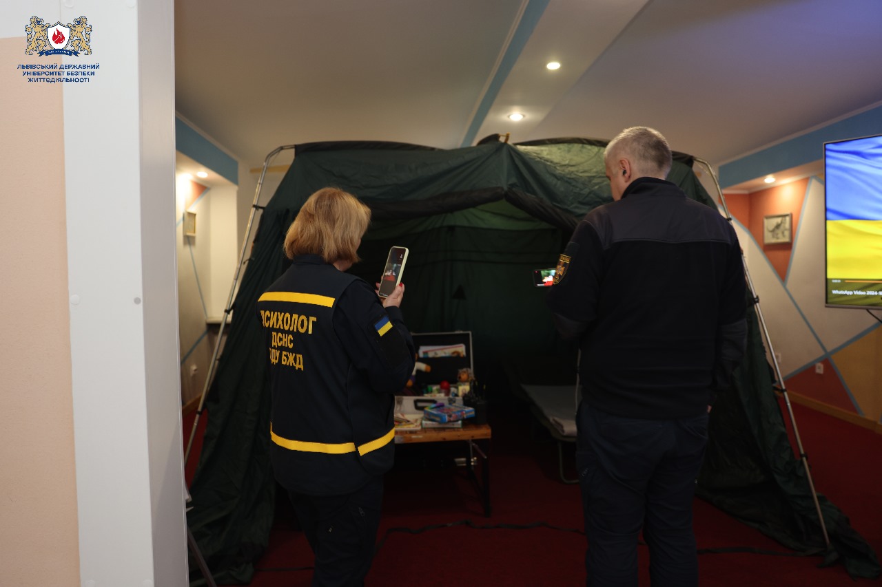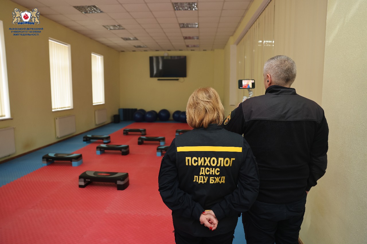 Відповідно до програми on-line роботи експертної групи під час проведення акредитаційної експертизи за спеціальністю 053 Психологія за першим (бакалаврським) рівнем вищої освіти освітніх програм «Практична психологія» та «Екстремальна та кризова психологія», начальник навчально-методичного центру Микола СИЧЕВСЬКИЙ, тимчасово-виконуючий обов’язки начальника факультету психології та соціального захисту Ігор КОВАЛЬ та гаранти освітніх програм Роксолана СІРКО та Оксана СТЕЛЬМАХ продемонстрували матеріально-технічну базу, що використовується під час реалізації освітніх програм, та соціальну інфраструктуру Університету.