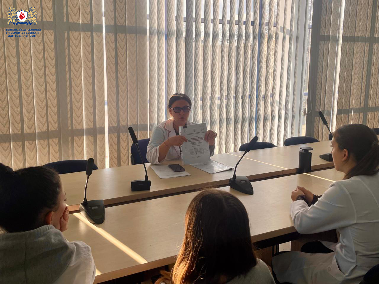 18 листопада 2025 року студенти першого курсу за освітньо-професійною програмою «Біобезпека та біозахист» спеціальності E1 «Біологія та біохімія» провели виїзне заняття на базі Державного науково-дослідного контрольного інституту ветеринарних препаратів та кормових добавок. Захід відбувся в межах дисципліни «Вступ до спеціальності» під керівництвом професора кафедри екологічної безпеки ЛДУБЖД Любові Юськів.