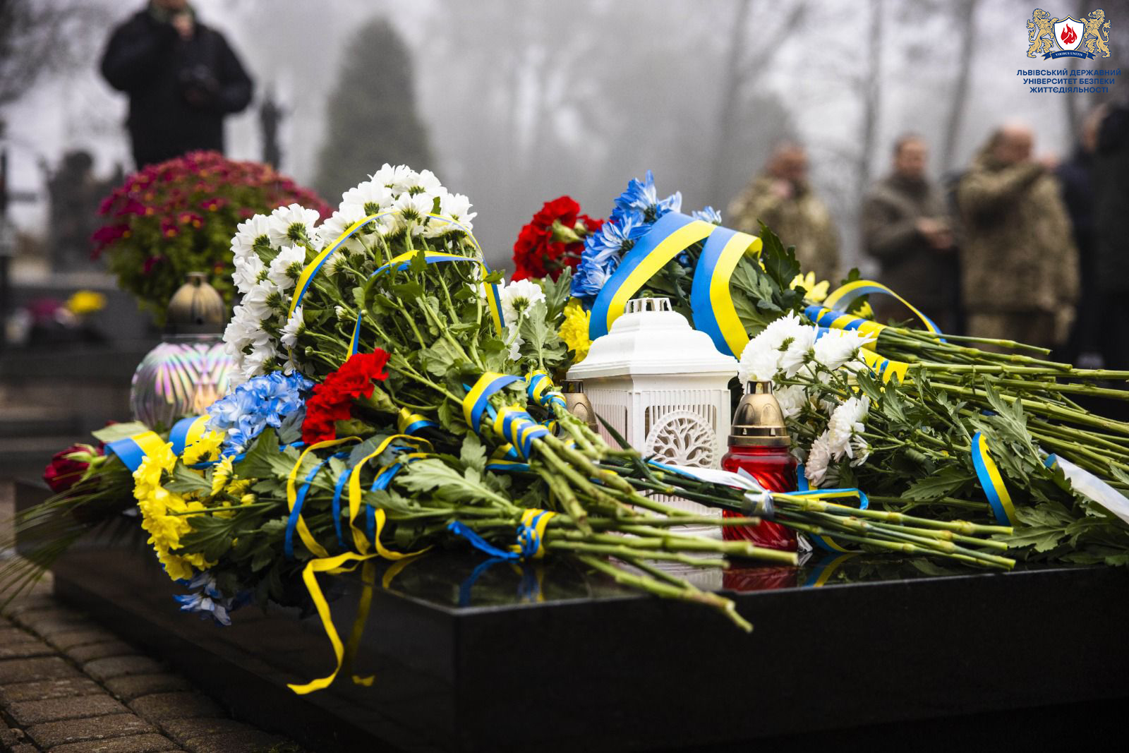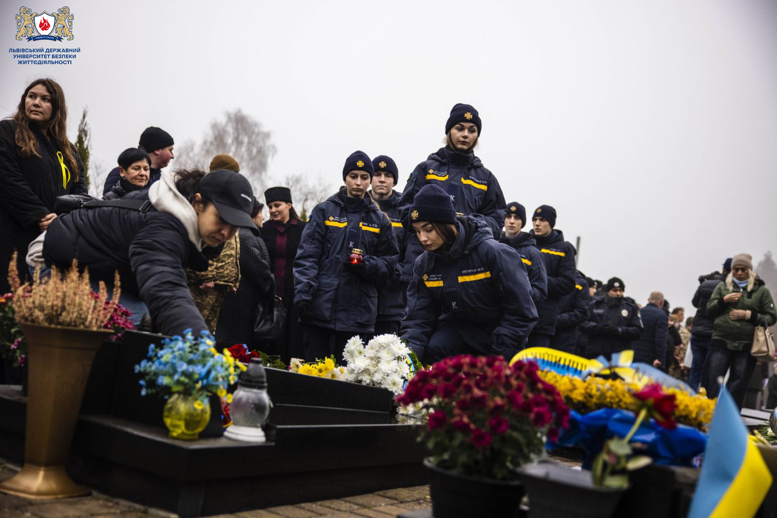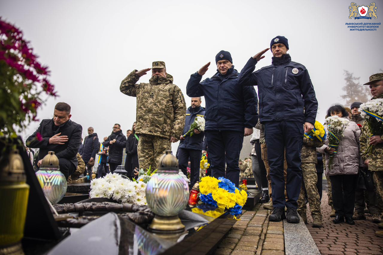 На полі почесних поховань № 67 Личаківського кладовища представники університету разом із курсантами вшанували пам’ять Героїв Небесної Сотні, які віддали життя під час Революції Гідності, а також генерал-майора Сергія Кульчицького, полковника Андрія Соколенка та всіх борців за волю та незалежність України.