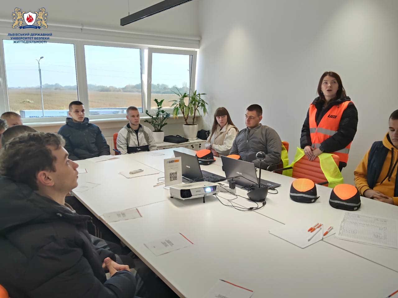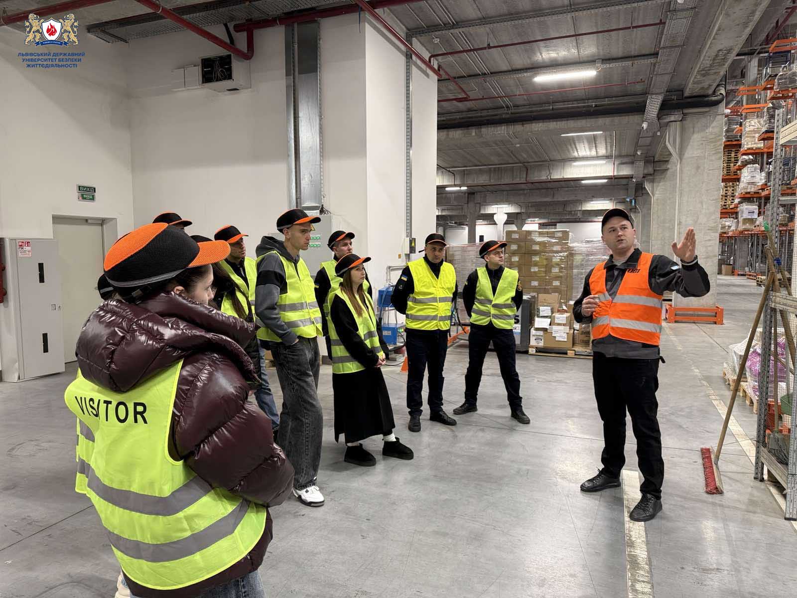Виїзне практичне заняття у логістичній компанії для здобувачів та науково-педагогічних працівників Львівського державного університету безпеки життєдіяльності навчально-наукового інституту пожежної та техногенної безпеки освітньої програми “Транспортні технології (на автомобільному транспорті)”.