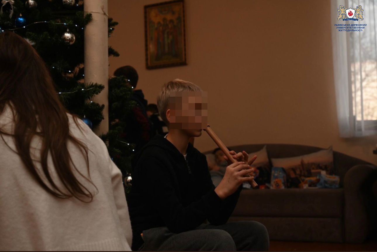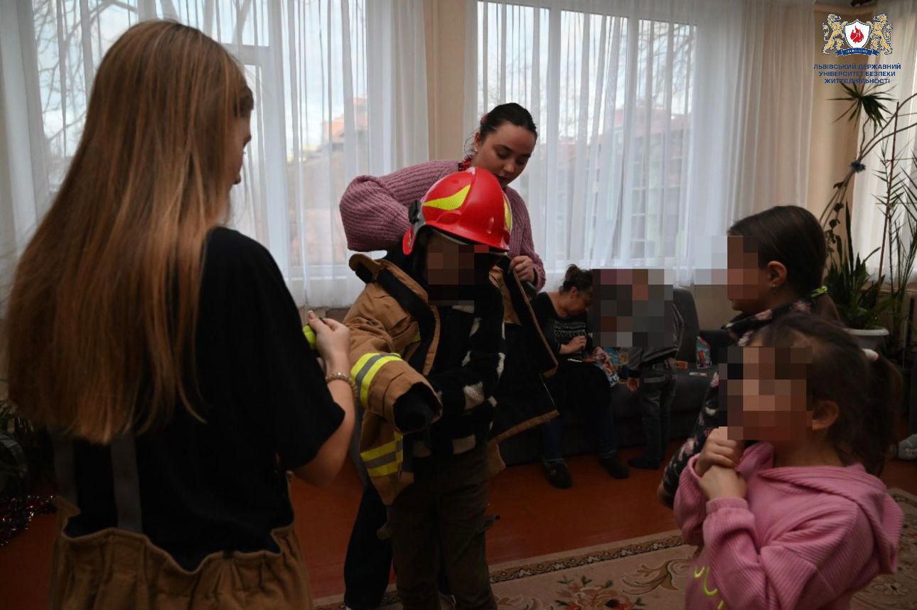 Вихованці закладу підготували творчі номери: читали вірші Святому Миколаю, грали на сопілках і ділилися своїми історіями. Особливо зворушила частина зустрічі, коли діти знайомилися зі спорядженням пожежного — із захопленням приміряли окремі елементи та робили фото на згадку.