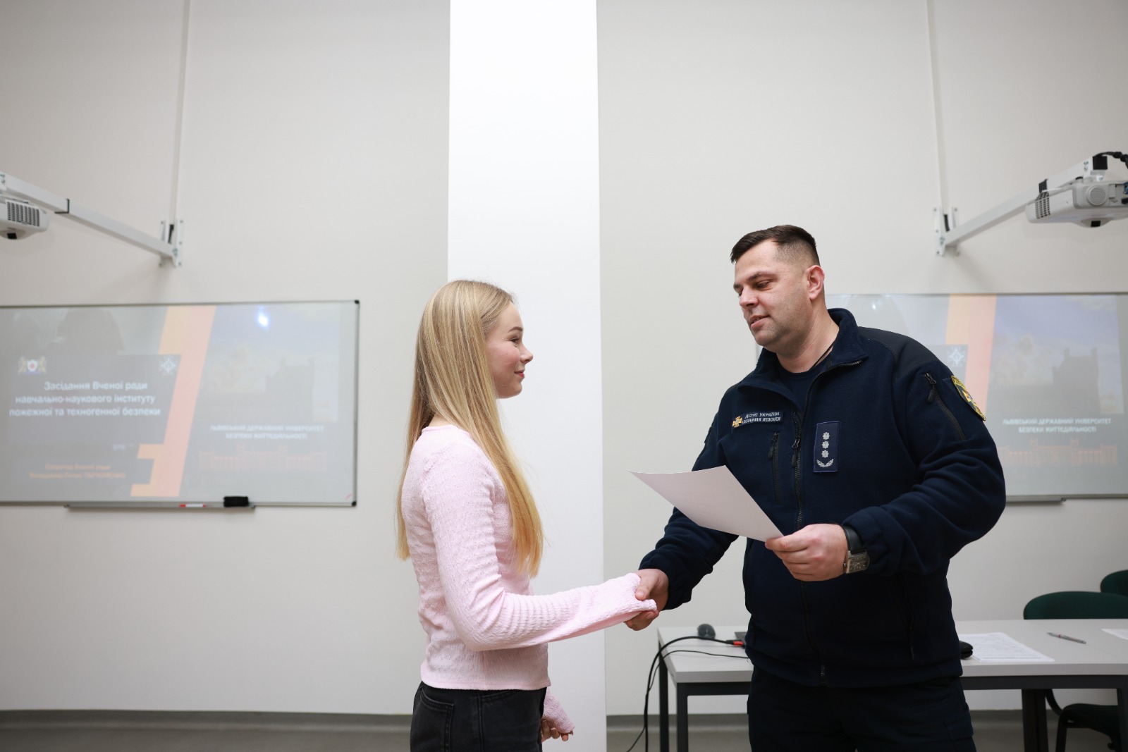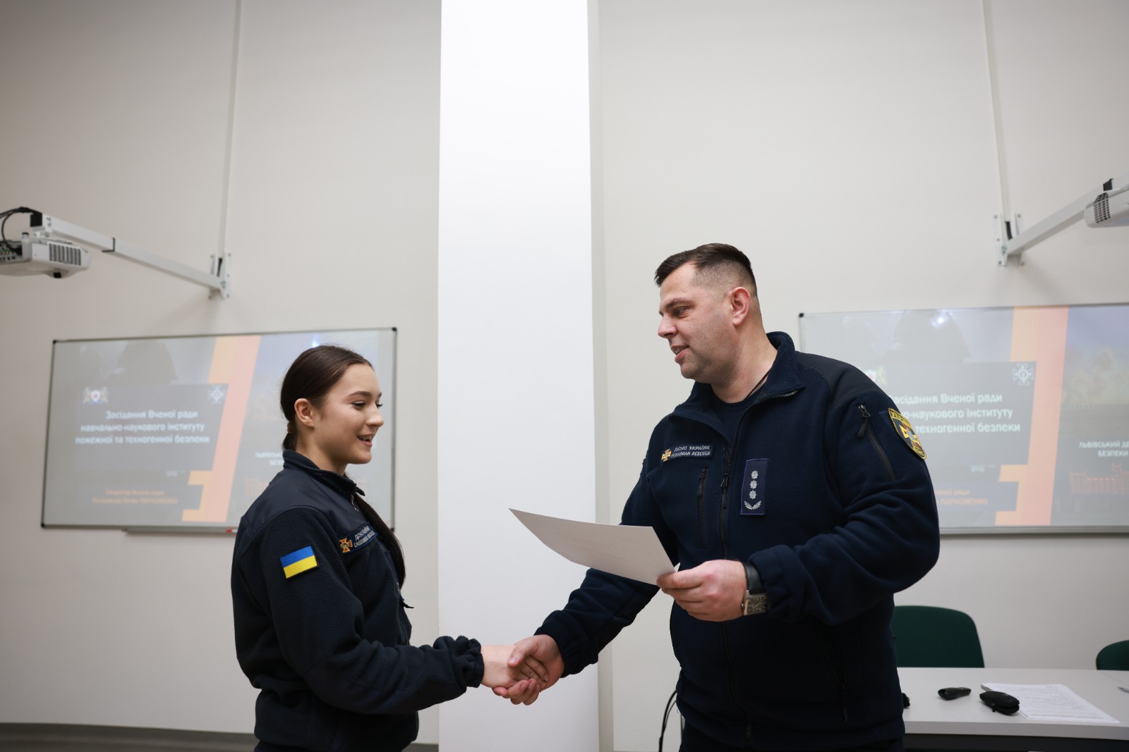 Нагородження відбулось в урочистій обстановці на засіданні Вченої ради навчально-наукового інституту пожежної та техногенної безпеки.