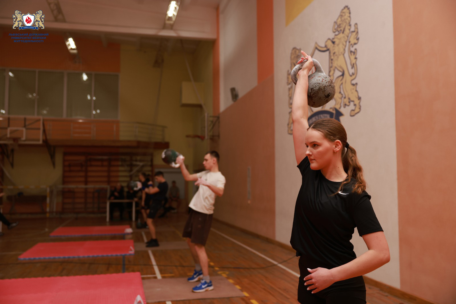 В спортивному залі Львівського державного університету безпеки життєдіяльності відбулись змагання з гирьового спорту. Ці змагання відбулись за програмою Спартакіади ЛДУБЖД 2025-2026 н.р. серед команд навчально-стройових підрозділів та проходили в рамках підготовки до Чемпіонату з гирьового спорту серед курсантів закладів вищої освіти, що належить до сфери управління Міністерства внутрішніх справ України. У змаганнях взяли участь 50 спортсменів серед чоловіків та 10 жінок з різних навчально стройових підрозділів. «Дуже крута атмосфера панувала протягом цих змагань, адже це перші змагання, які відбуваються в залі єдиноборств, а ще всі учасники хочуть показати свої найкращі результати» - зазначив курсант Роман .