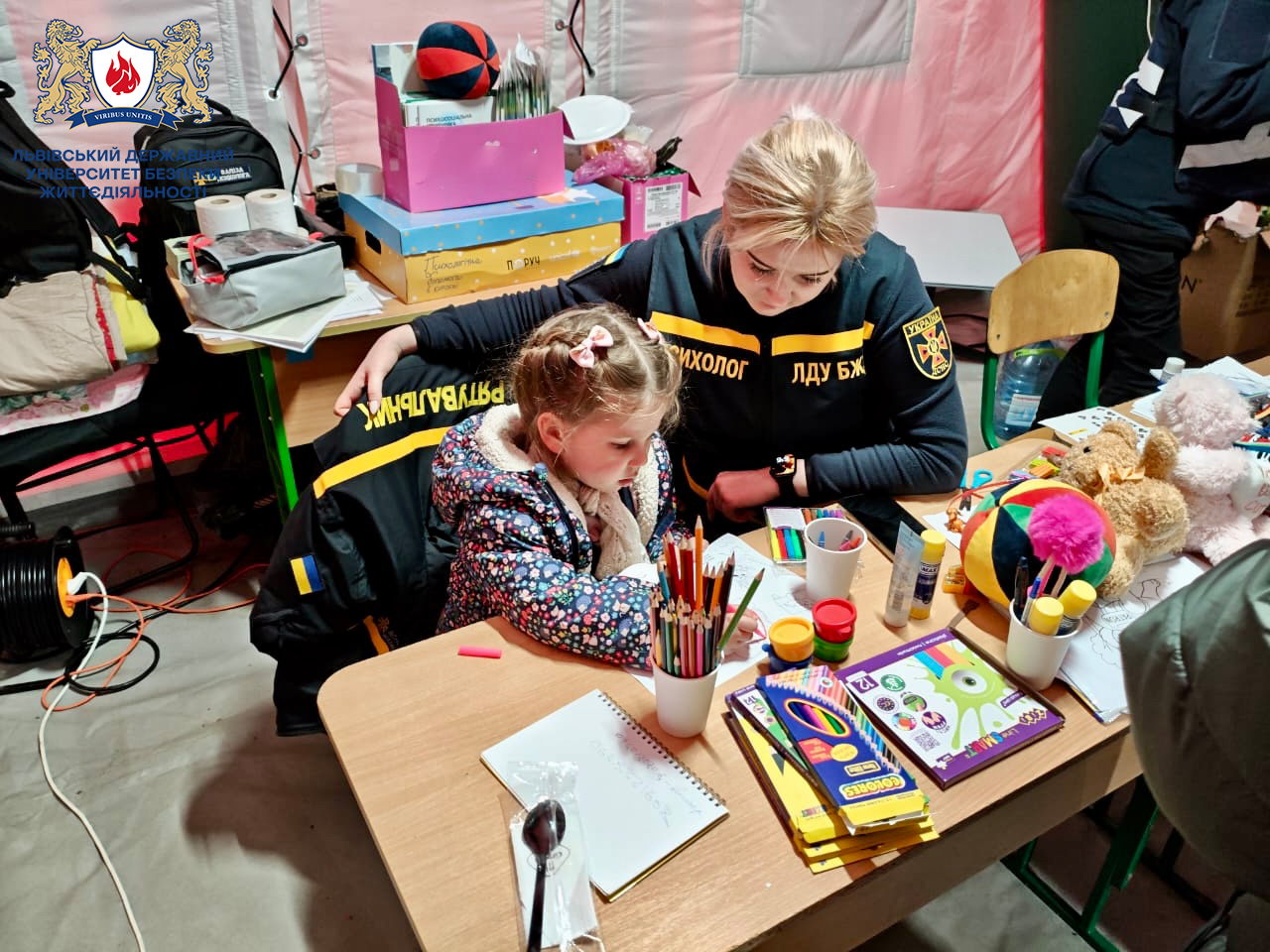 Начальник сектору психологічного забезпечення Львівського державного університету безпеки життєдіяльності Христина Судніцина вже кілька днів працює на пункті незламності в Києві, допомагаючи людям у найскладніші моменти.