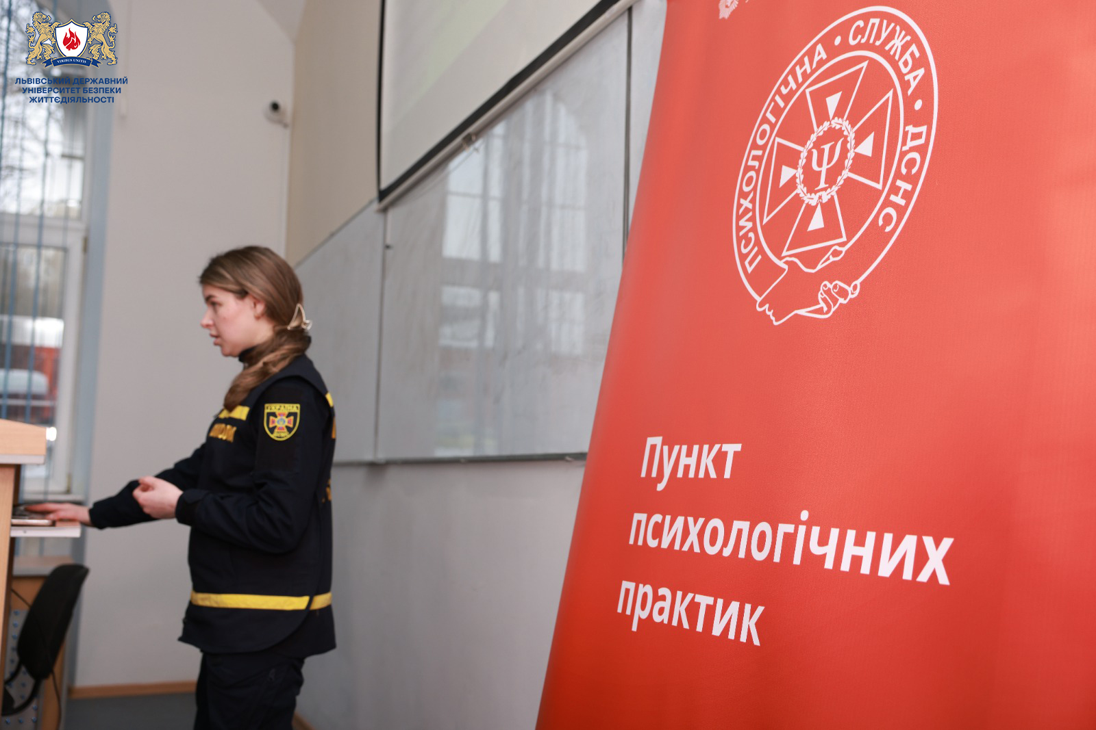 У межах проєкту «Пункт психологічних практик» та Всеукраїнської програми ментального здоров’я «Ти як?», ініційованої першою леді України Оленою Зеленською, старший психолог сектору психологічного забезпечення Анастасія Крілишин провела бесіду зі здобувачами вищої освіти на тему «Основи першої психологічної допомоги».