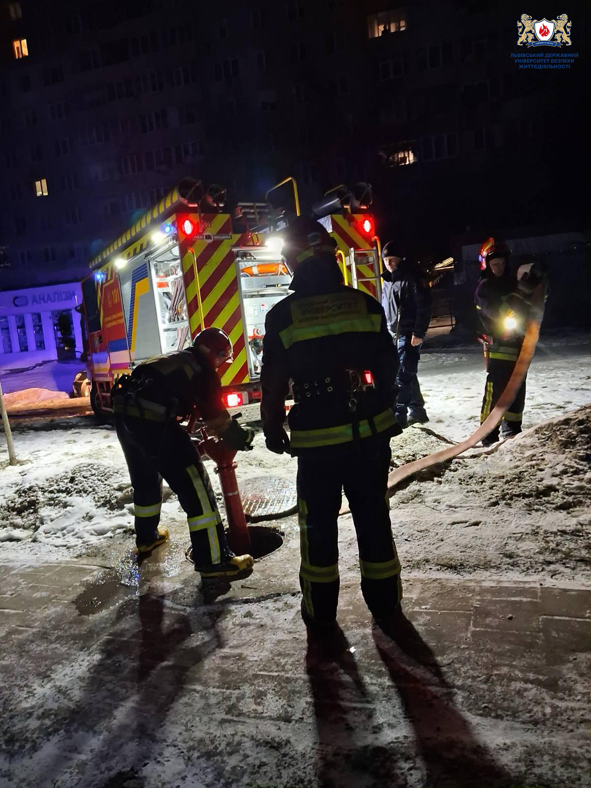 Осередок займання знаходився на другому поверсі дев’ятиповерхового житлового будинку. Курсанти університету спільно з рятувальниками Львівщини ліквідували пожежу та виконували завдання у складі оперативних розрахунків.