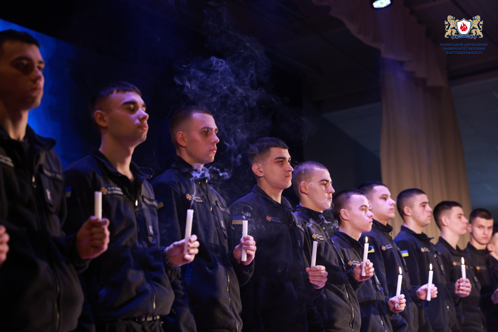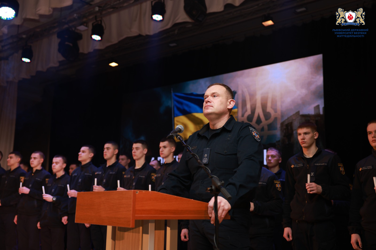 У роковини повномасштабного вторгнення університетська спільнота Львівського державного університету безпеки життєдіяльності зібралася, щоб вшанувати пам’ять полеглих захисників України — випускників та рятувальників, які віддали життя за свободу і незалежність держави.
