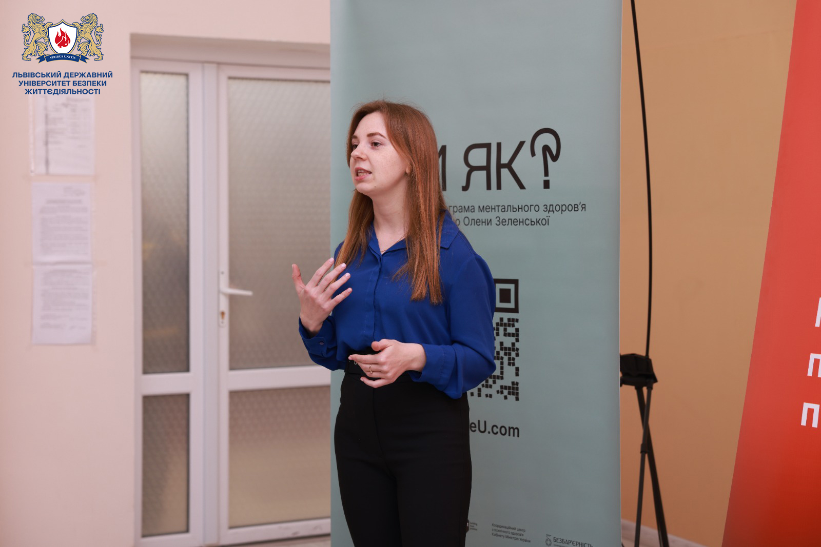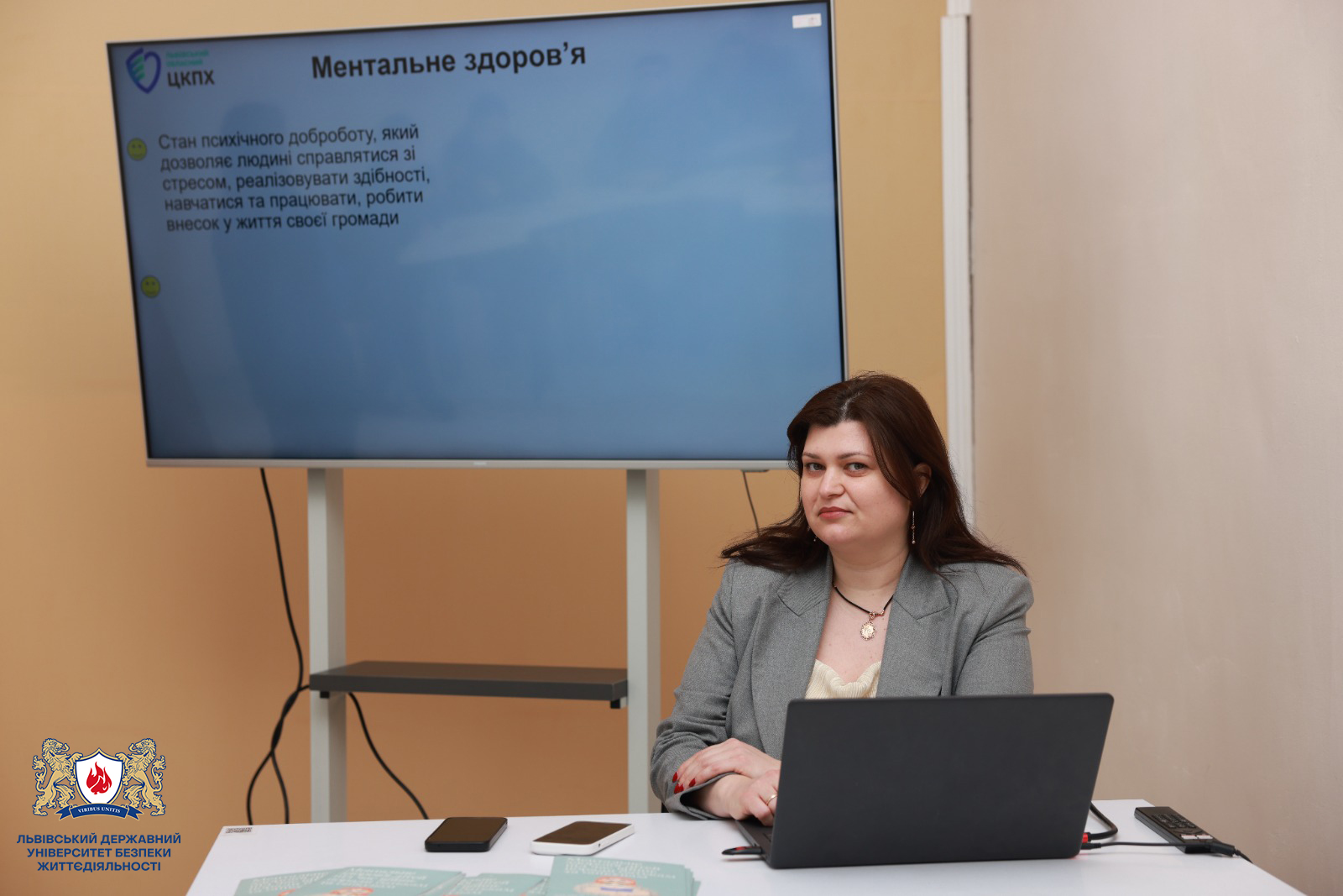 У межах проєкту «Пункт психологічних практик» та Всеукраїнської програми ментального здоров’я «Ти як?», ініційованої першою леді України Оленою Зеленською, старший психолог сектору психологічного забезпечення Анастасія Крілишин спільно з фахівцями Львівського обласного центру контролю та профілактики хвороб МОЗ України — психологом Ольгою Гущею та лікарем із загальної гігієни Мар’яною Древаль — провели зустріч зі здобувачами вищої освіти.