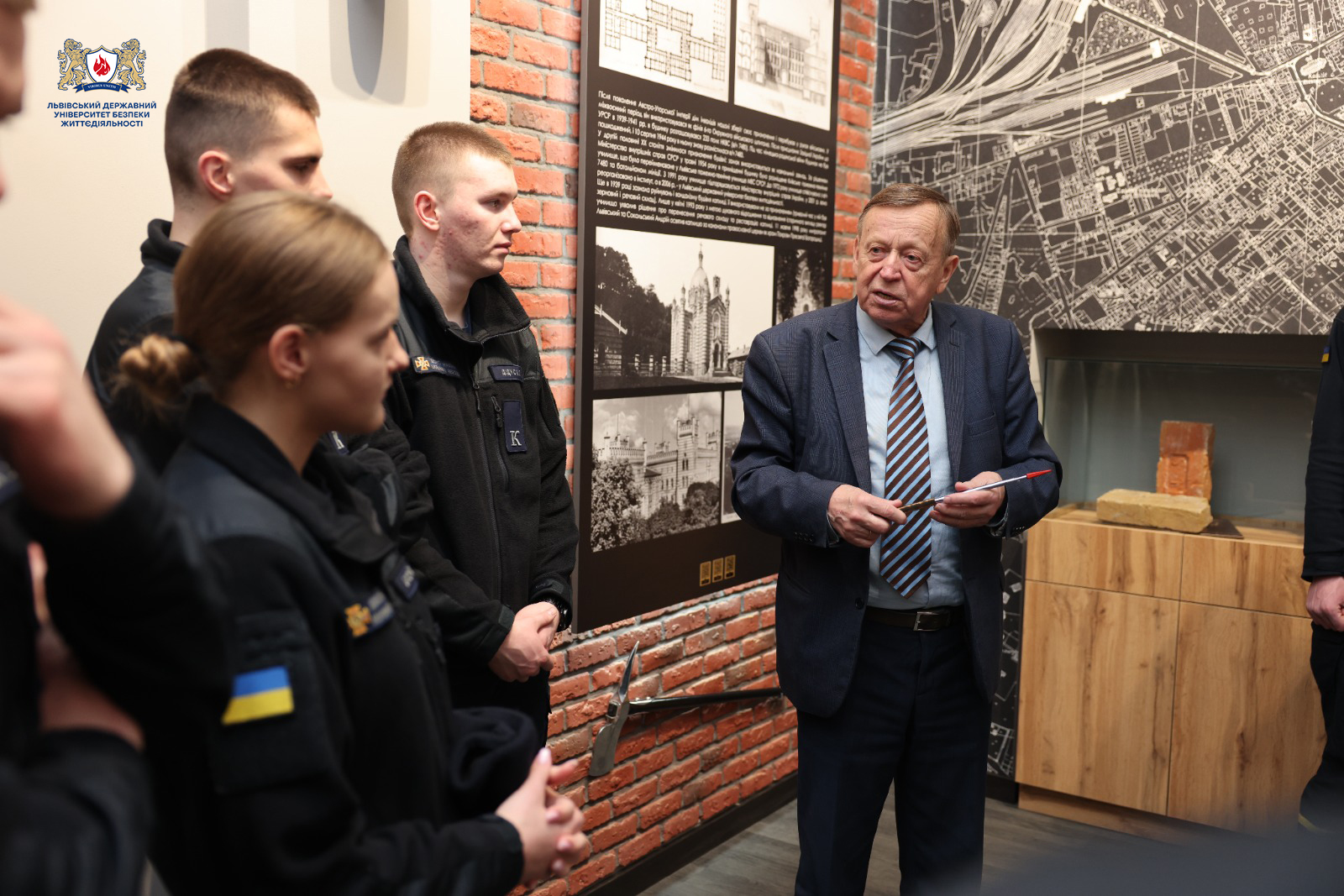 Курсанти Львівського державного університету безпеки життєдіяльності відвідали кімнату національно-патріотичного виховання, де мали змогу ближче ознайомитися з історією закладу, його традиціями та визначними подіями.