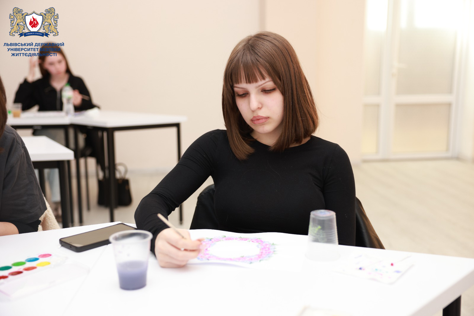Фахівці Лабораторії екстремальної психології та реабілітації Ілона ШВЕЦОВА і Софія ПАСІЧНИК організувала арт-терапевтичне заняття для здобувачів, метою якого стало ознайомлення майбутніх фахівців із можливостями ізотерапії як методу емоційної саморегуляції, розвитку внутрішніх ресурсів та професійної рефлексії.