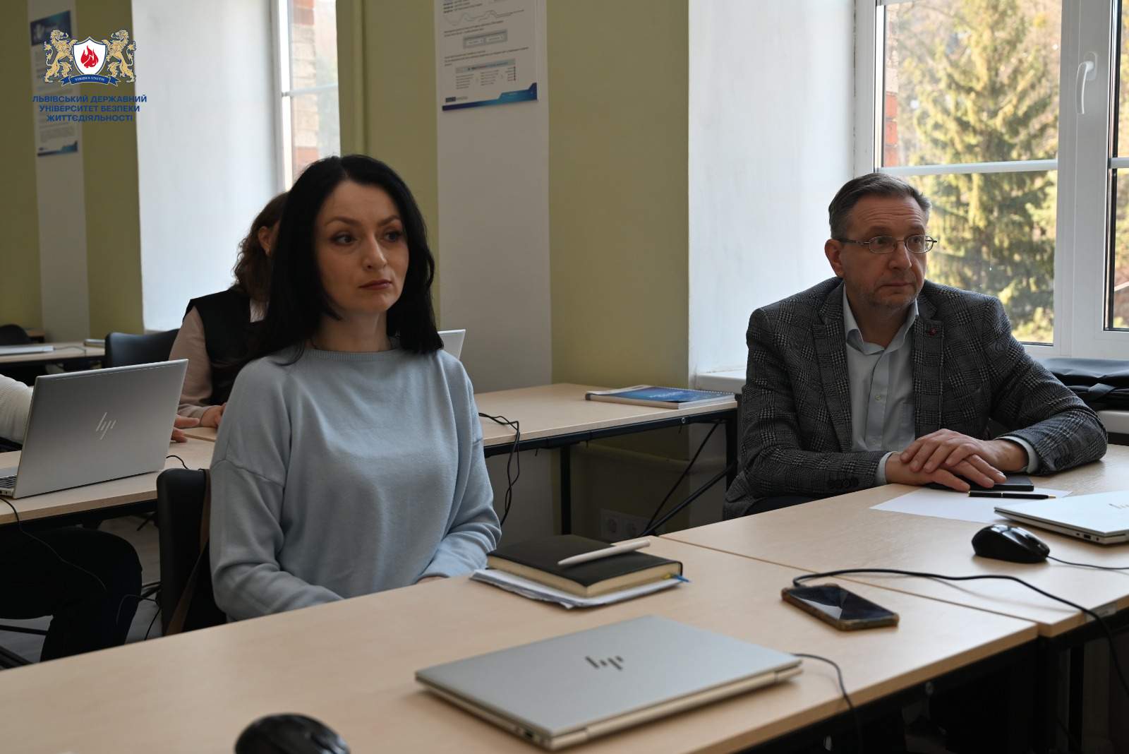 До обговорення також долучилися науково-педагогічні працівники кафедри рятувальної підготовки та фізичного виховання – Юрій Антошків, кандидат наук з фізичного виховання та спорту, полковник служби цивільного захисту, та Олександр Бушуєв, старший викладач кафедри, підполковник служби цивільного захисту; випускники кафедри різних років – Марта Маслєєва, головний державний інспектор відділу з питань безпеки праці північного регіону Управління інспекційної діяльності у Львівській області Західного міжрегіонального управління Державної служби з питань праці; Андріана Кахній, інженер з охорони праці ПП «ТЕРАПРОФ»; Олександра Полодюк, провідний інженер з охорони праці та навколишнього середовища філії ТОВ «NESTLE Україна» «Львів»; магістри заочної форми навчання – Юрій Нікітін, начальник служби з охорони праці ТОВ "БІДЖЕЙЕС КОМПОНЕНТИ УКРАЇНА", та Яна Панчук, провідний інженер з охорони праці ТОВ «Компанія ОККО-бізнес», а також здобувачі освіти освітнього рівня бакалавр.