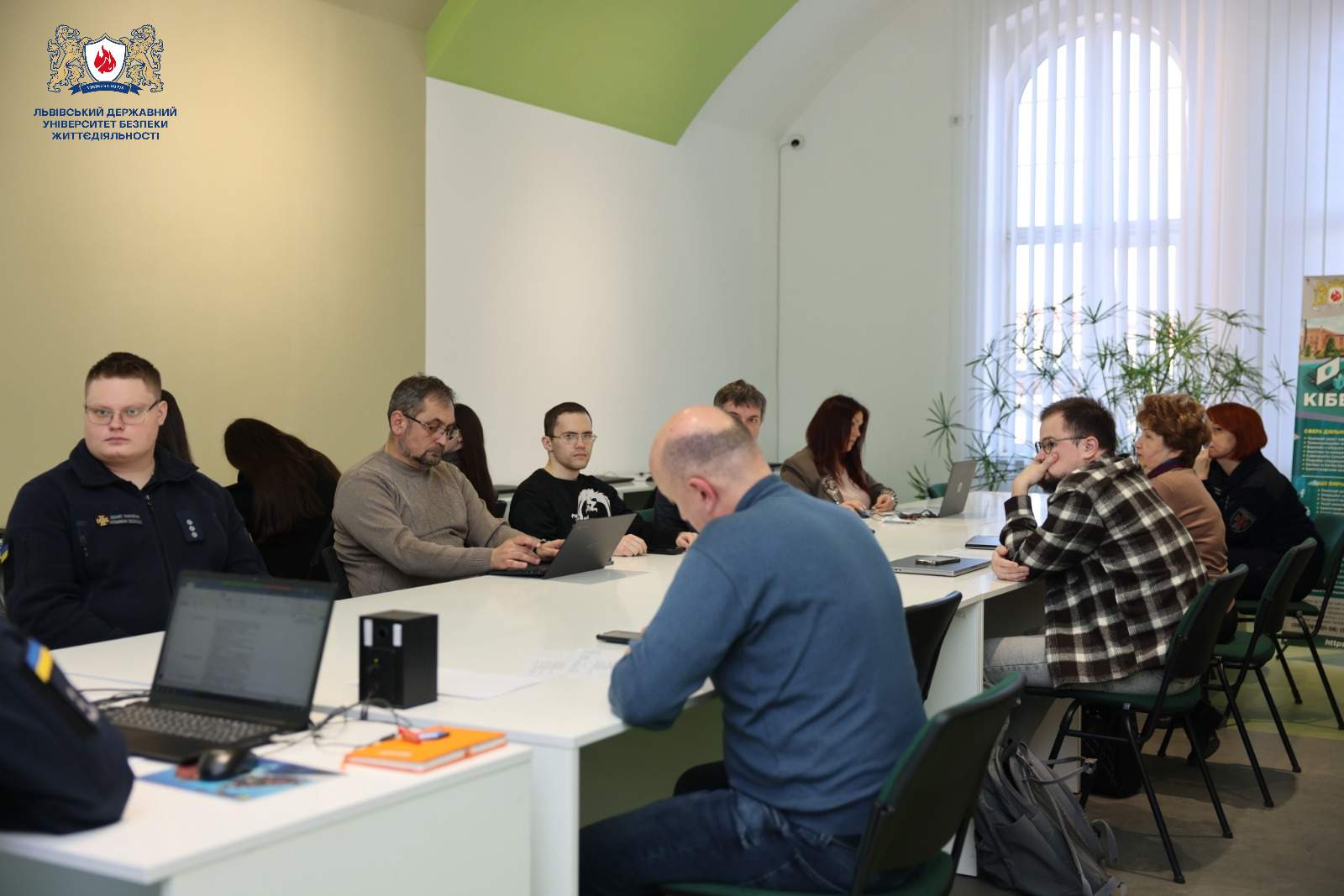 До обговорення освітніх програм «Управління інформаційною безпекою» долучились науково-педагогічні працівники та керівництво Університету, представники від обласних підрозділів ДСНС України, компанії Softsetve - Михайло КРОПИВА, Роман КАРПЮК, кіберполіції - Валерія ІВКОВА, Департаменту освіти і науки Львівської обласної державної адміністрації - Мирон ПАЦАЙ, здобувачі вищої освіти, випускники та інші стейкхолдери освітньої програми.