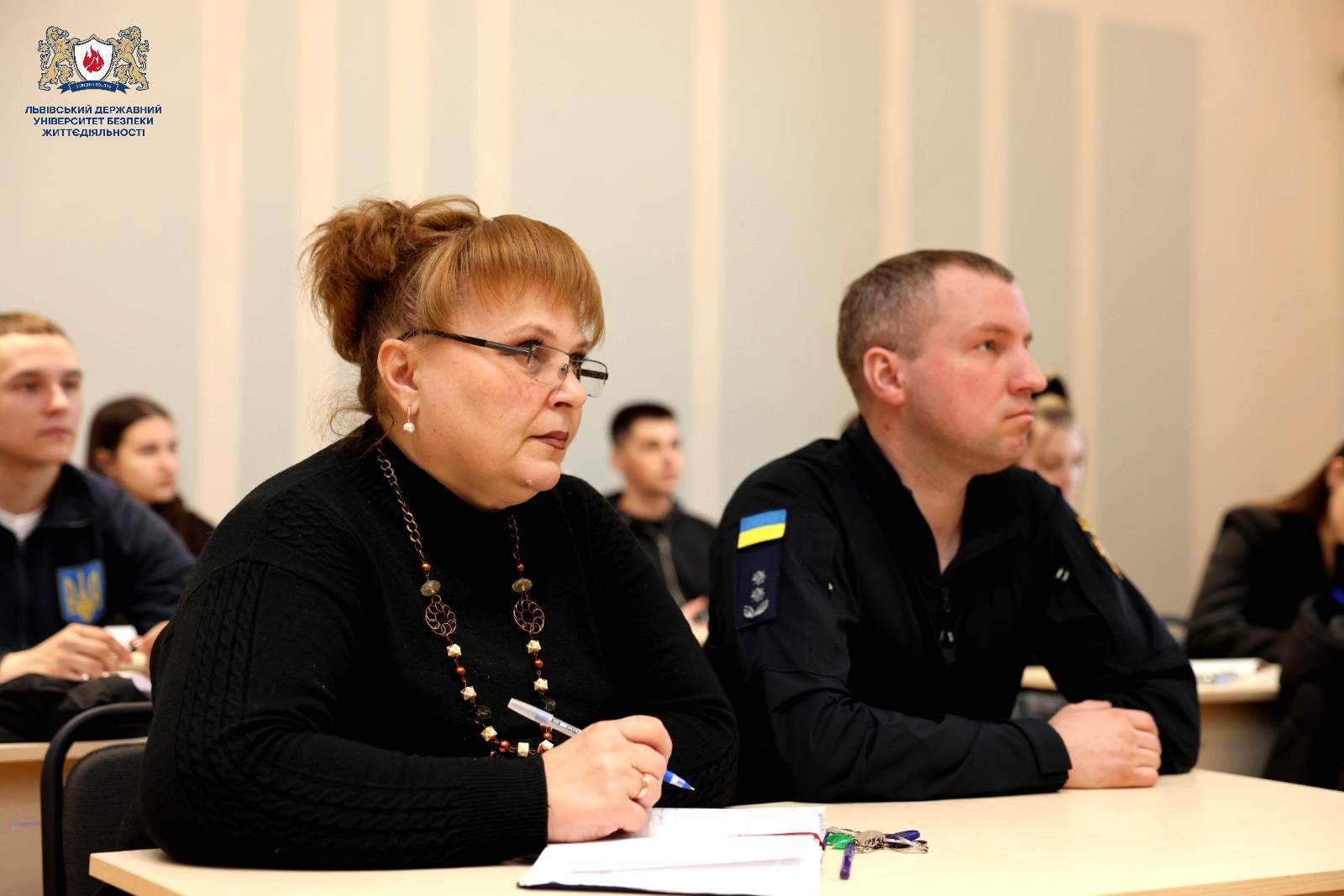 Лекція відбулася у гібридному форматі: очно — для студентів освітньої програми «Охорона праці» денної форми навчання та дистанційно — для магістрів цієї ж освітньої програми заочної форми навчання.