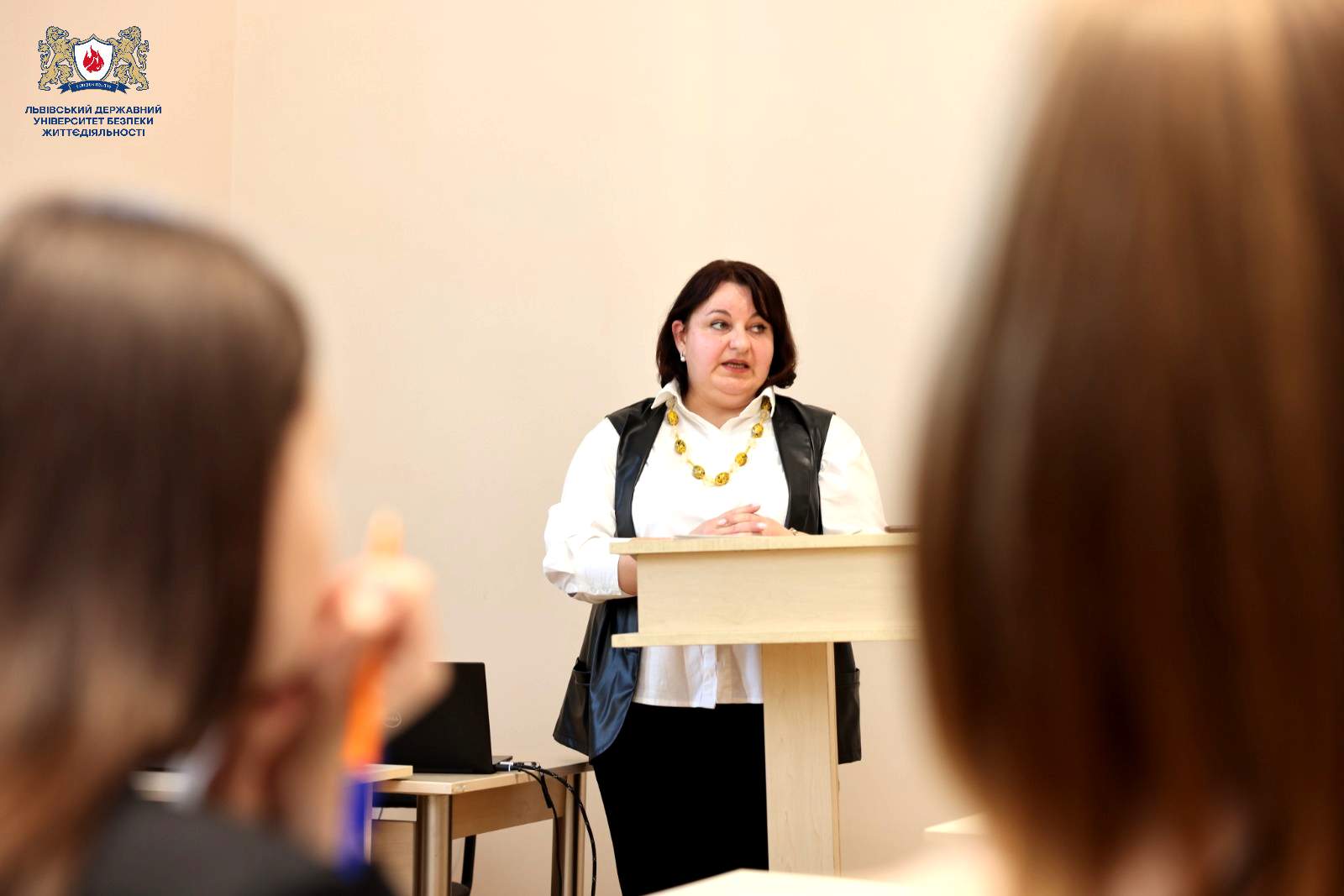 13 березня доцент кафедри промислової безпеки та охорони праці Орислава ГОРНОСТАЙ провела лекційне заняття на тему «Соціальні категорії сучасного суспільства: їхній зв’язок із трудовою діяльністю та безпекою праці» для здобувачів освіти Львівський державний університет безпеки життєдіяльності.