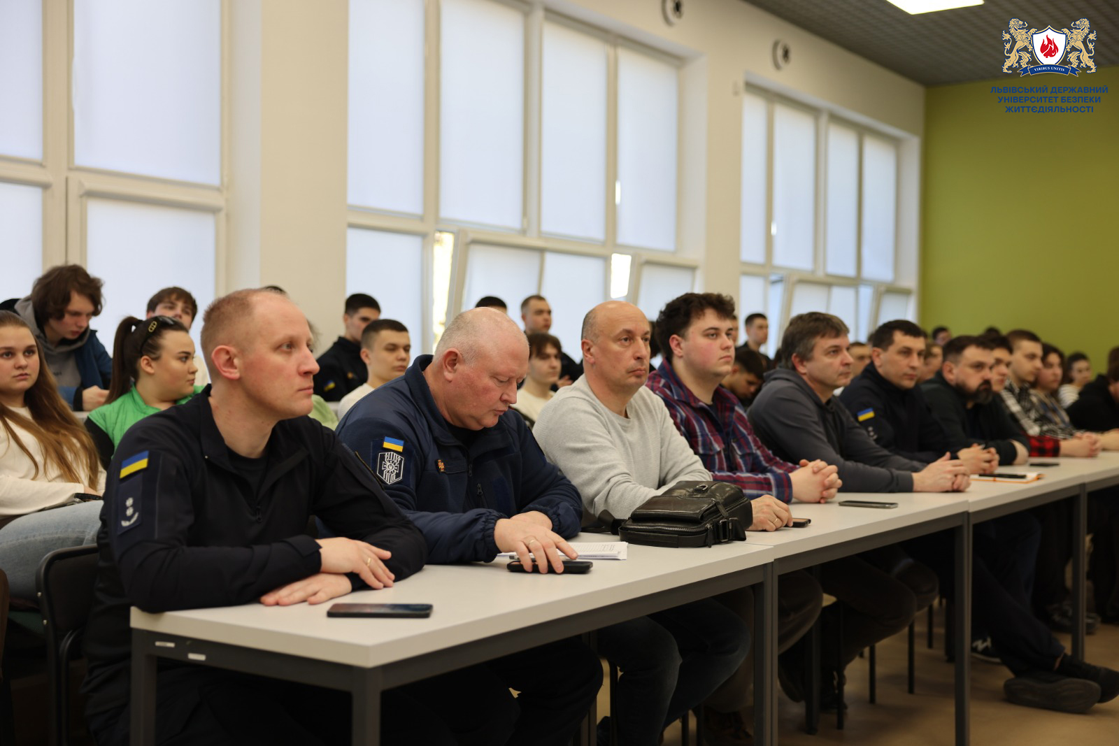 11 березня 2026 року на базі Львівського державного університету безпеки життєдіяльності відбулася гостьова лекція за участю начальника відділу телекомунікацій, інформаційних технологій та Системи 112 Головного управління ДСНС України у Львівській області Романа ЯРЕМЧУКА та фахівця відділу Віталія СИРОВОГО.
