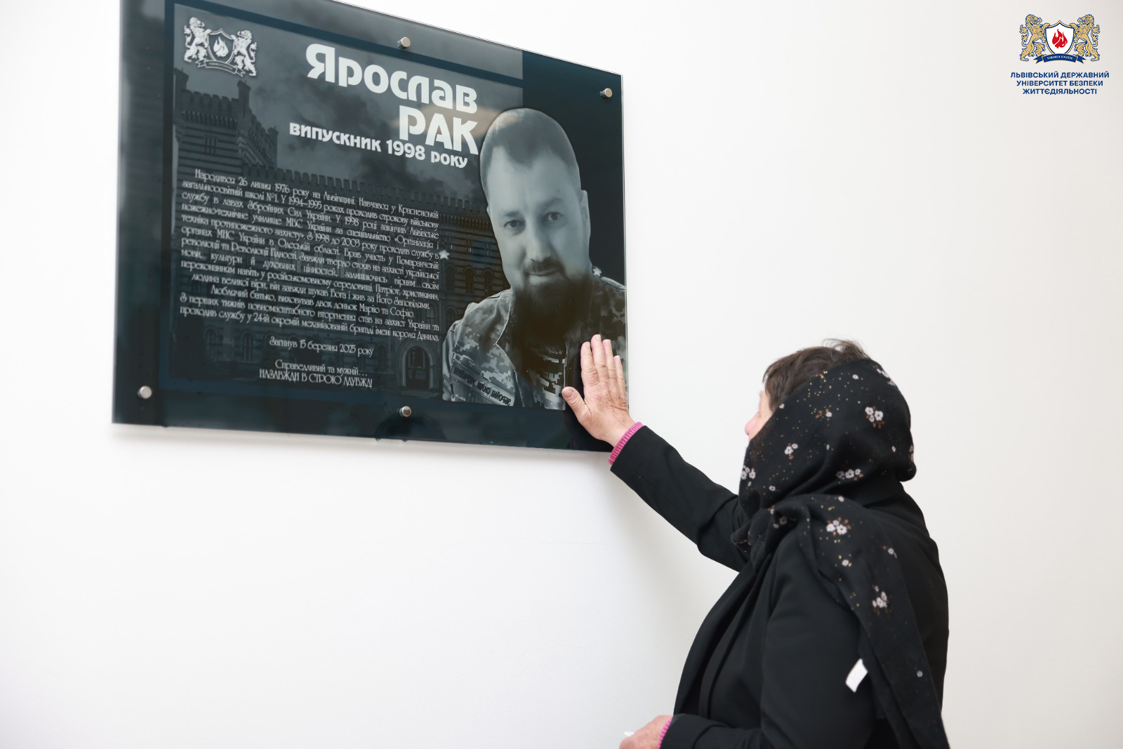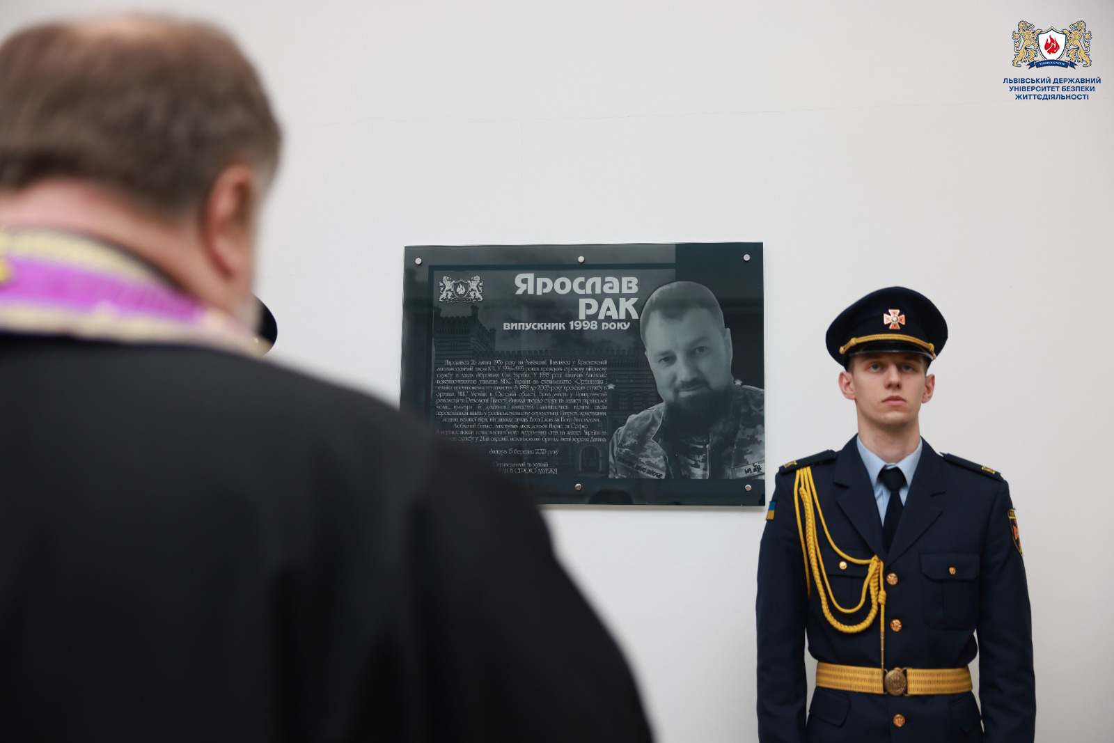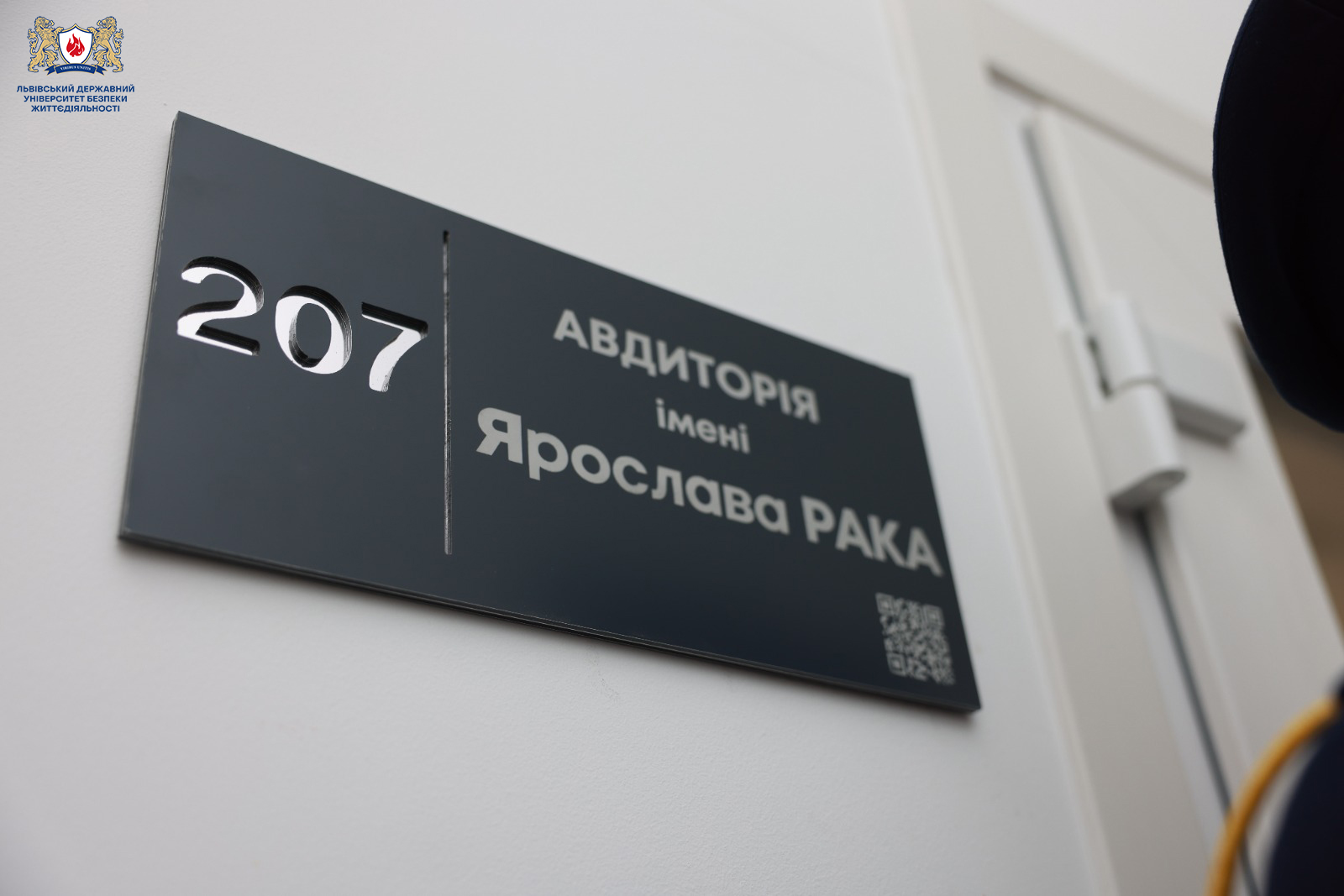 Сьогодні у Львівському державному університеті безпеки життєдіяльності відбулася зворушлива подія — відкриття іменної аудиторії, яка носитиме ім’я випускника нашого закладу, воїна та патріота — Ярослава Рака.