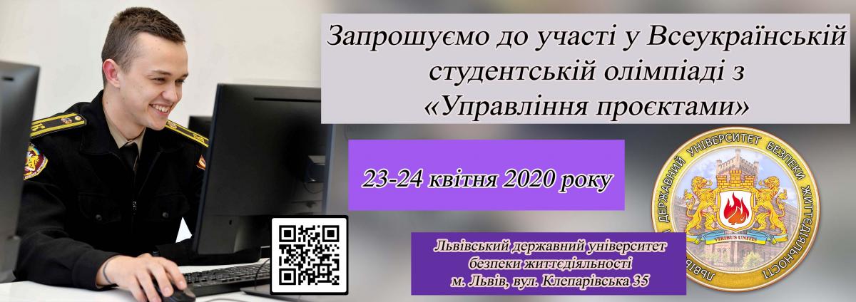 Відповідно до Наказу Міністерства освіти і науки України від 17.12.2019 № 1580 “Про проведення Всеукраїнської студентської олімпіади у 2019/2020 навчальному році” Львівський державний університет безпеки життєдіяльності з 23 по 24 квітня 2020 року проводить ІІ етапу Всеукраїнської студентської олімпіади «Управління проектами».